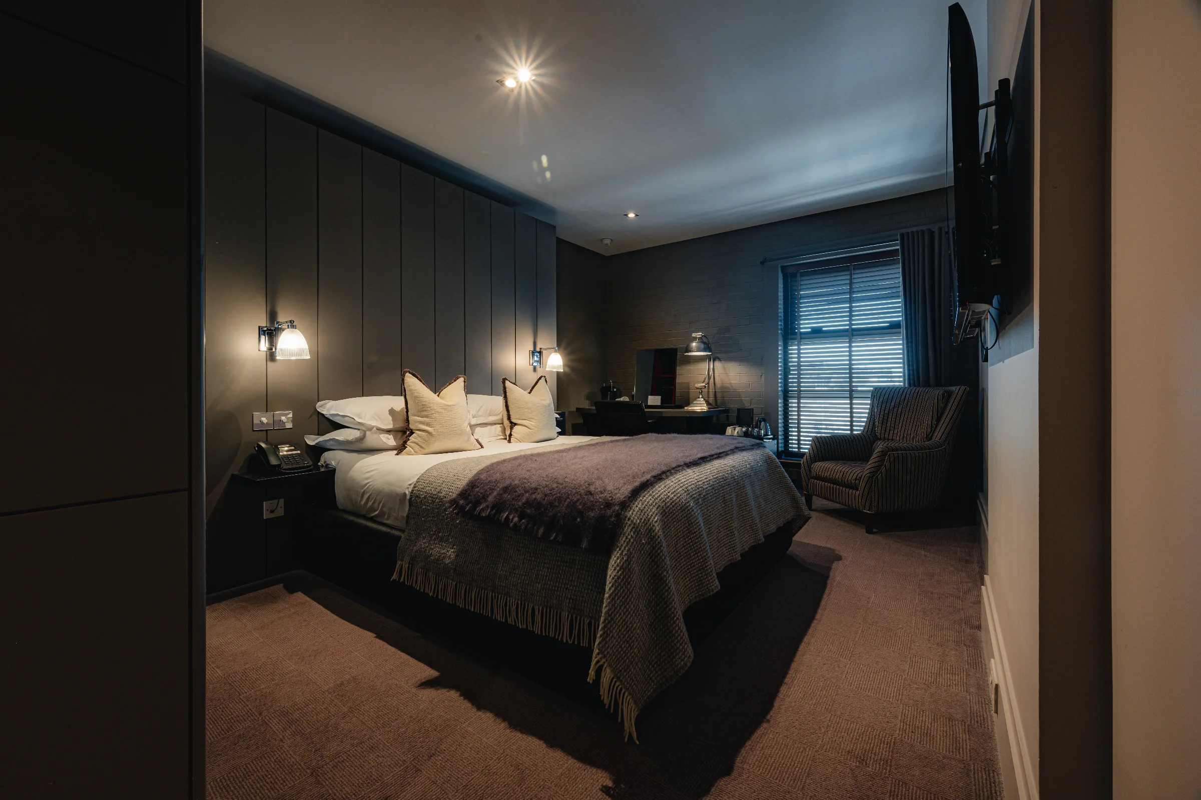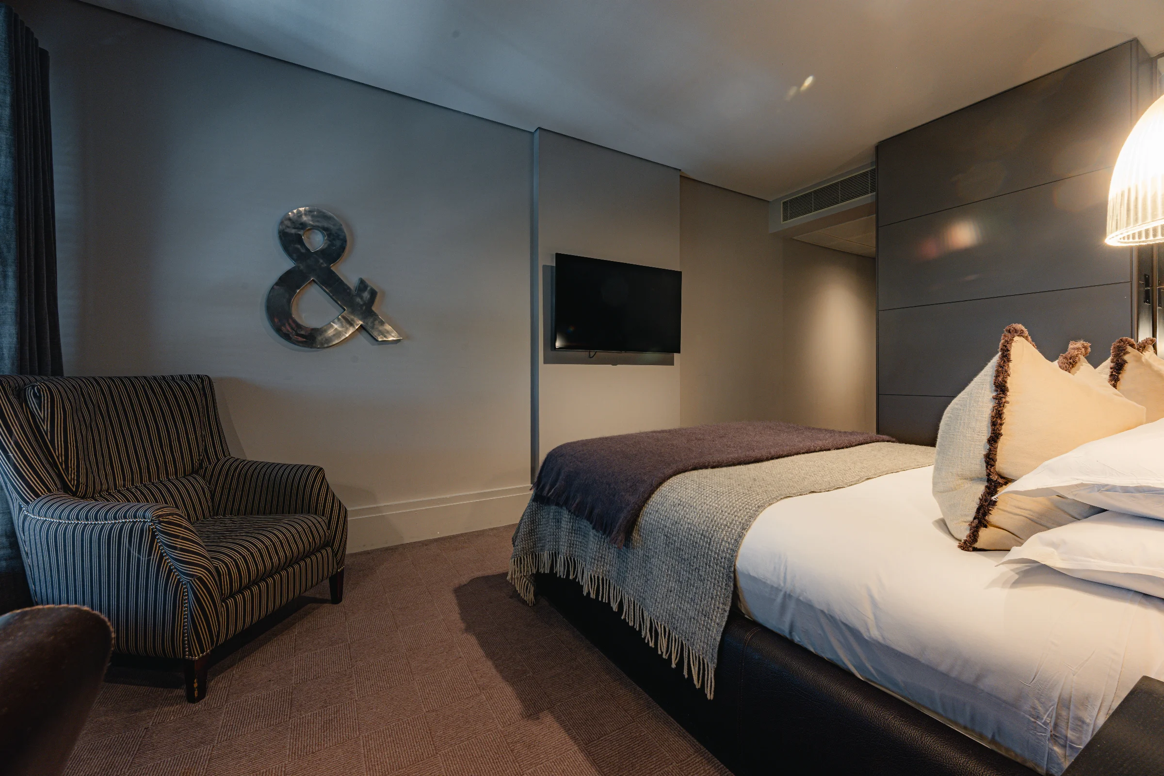 A beautifully designed contemporary room, with a king-size bed, luxury furnishings, rainfall en-suite shower and 48" HDTV with Sky Sports.