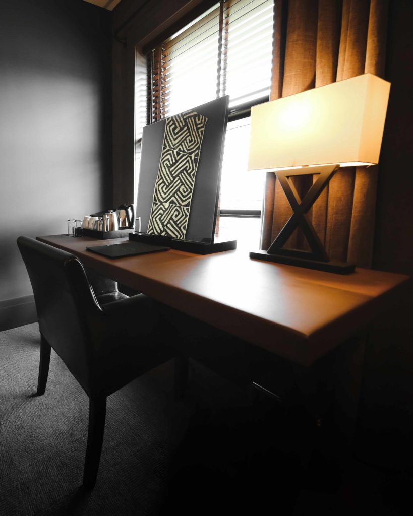 Luxurious king-size bed — Partial view of the Forth Railway Bridge — HDTV with Sky package including Sports & Movies — Complimentary glass of Champagne — Nespresso machine — Tea and coffee tray with cafetière & bottled water — Bathrobes and slippers — Crisp cotton linen and sumptuously soft bedding — Ensuite rainfall shower — Iron & ironing board — Luxury toiletries — Complimentary WiFi — Hairdryer — Complimentary stocked mini-bar