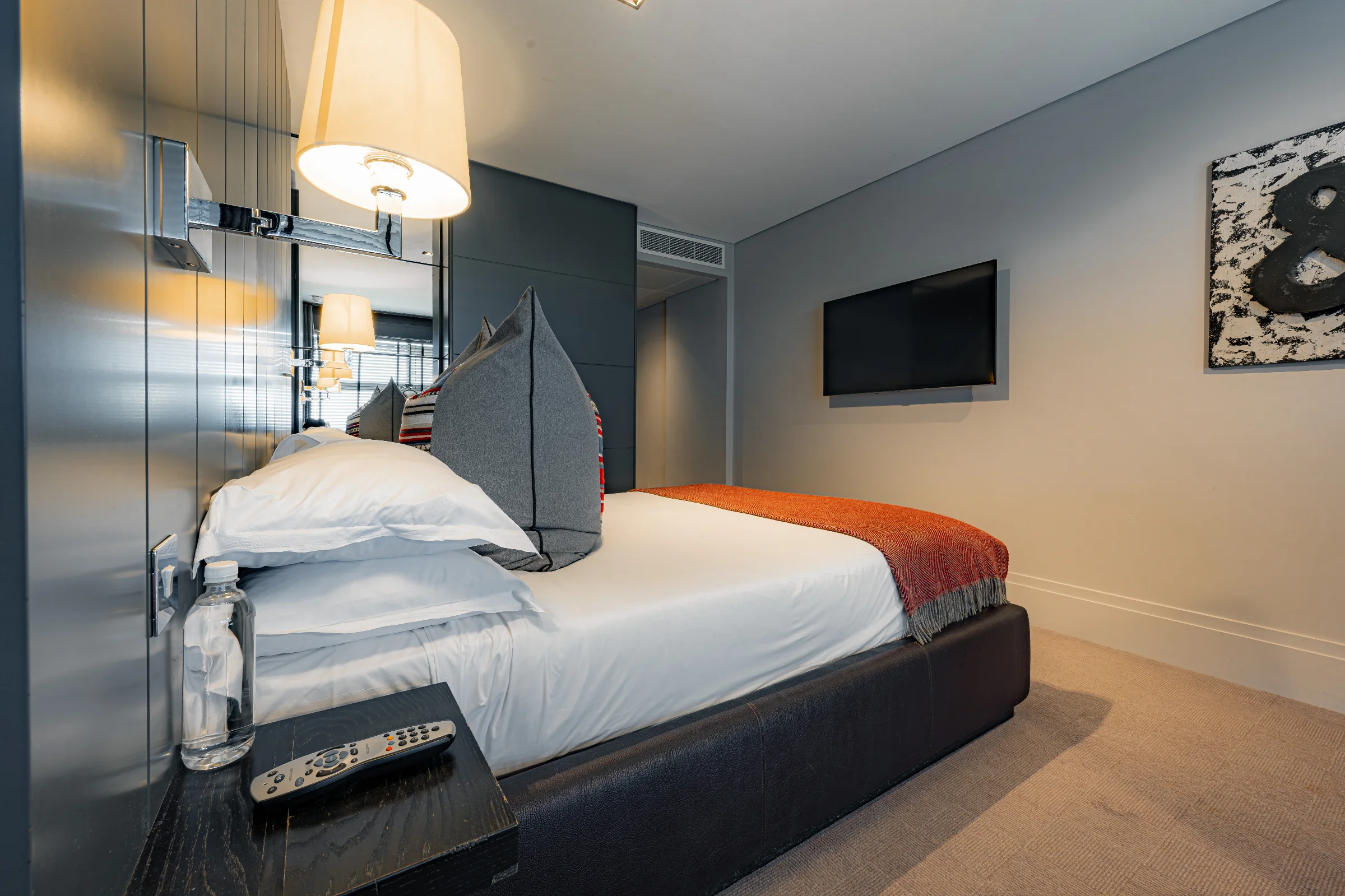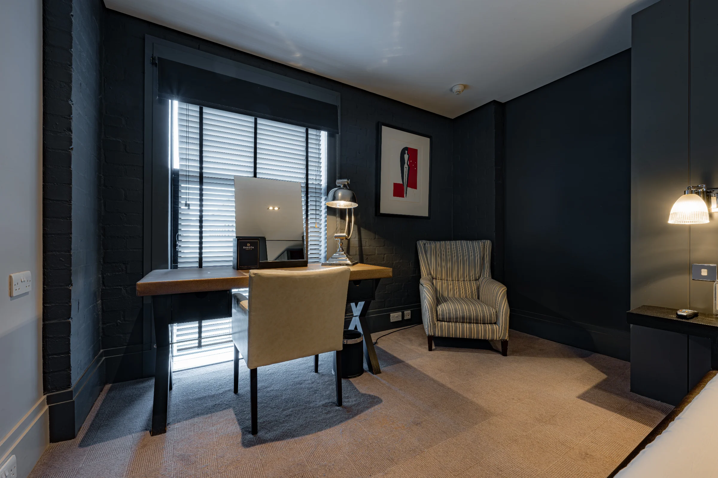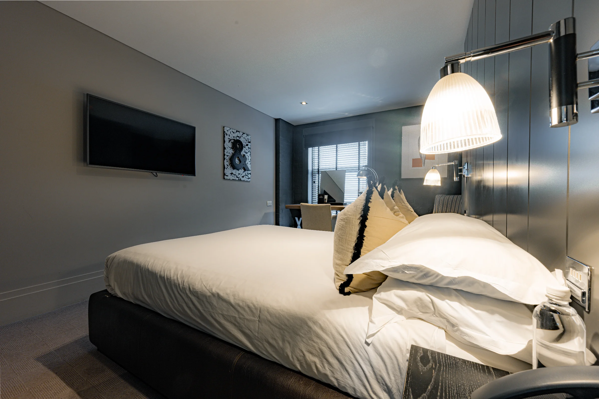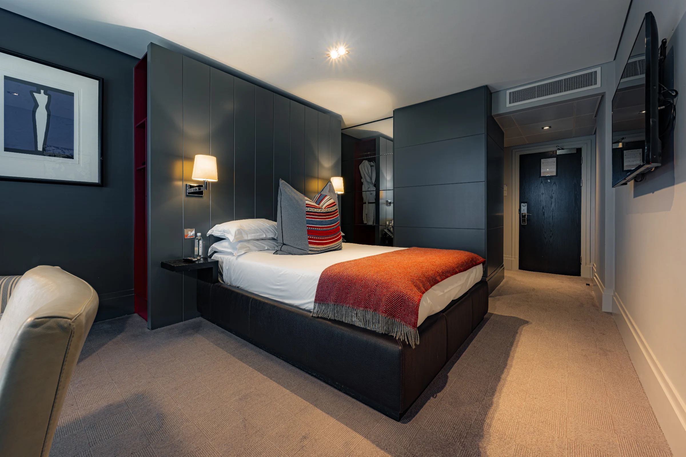 A beautifully designed contemporary room, with a large super-king size bed, plush furnishings and a powerful ensuite shower.