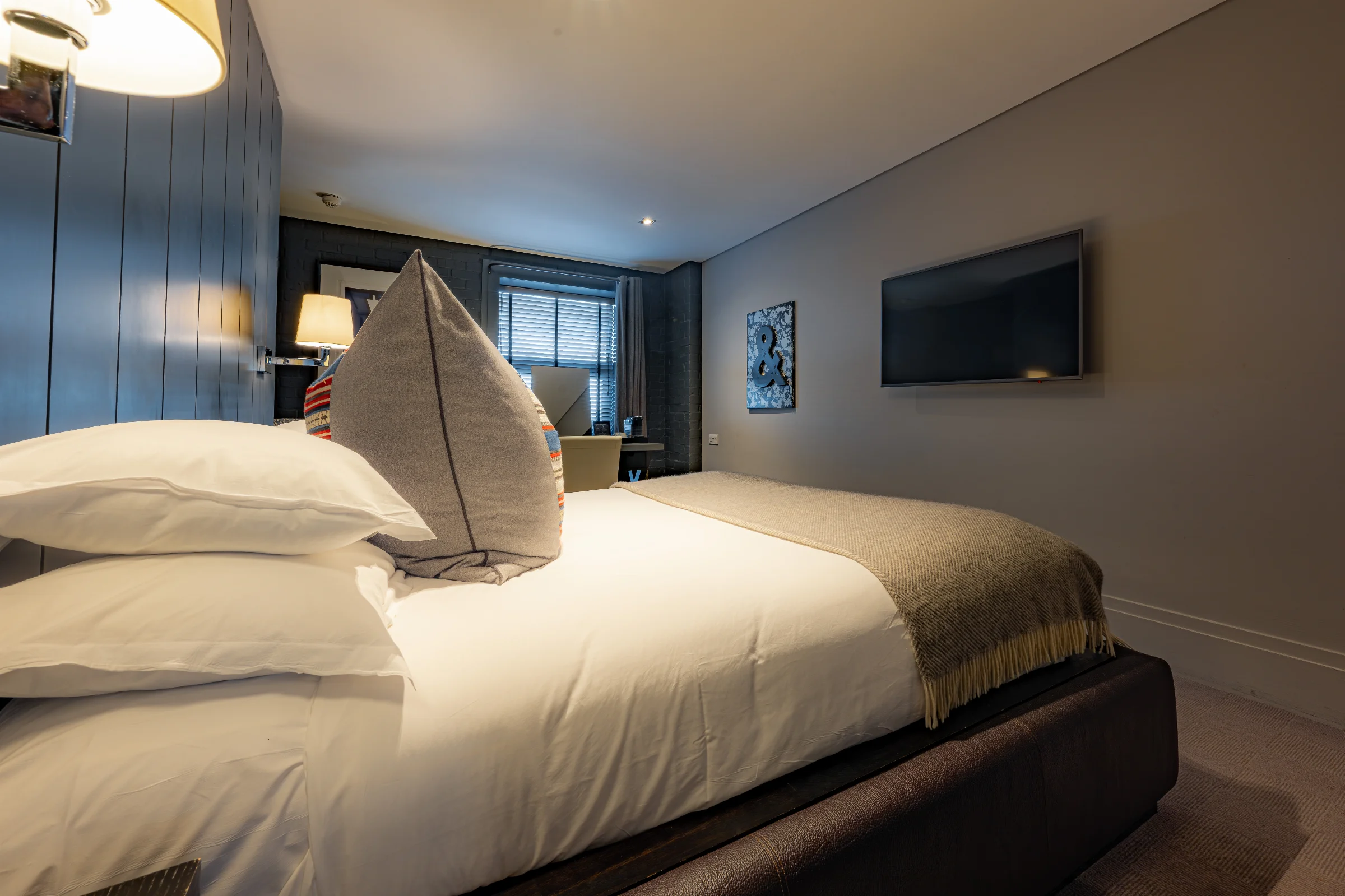 A beautifully designed contemporary room, with a large super-king size bed, plush furnishings and a powerful ensuite shower.