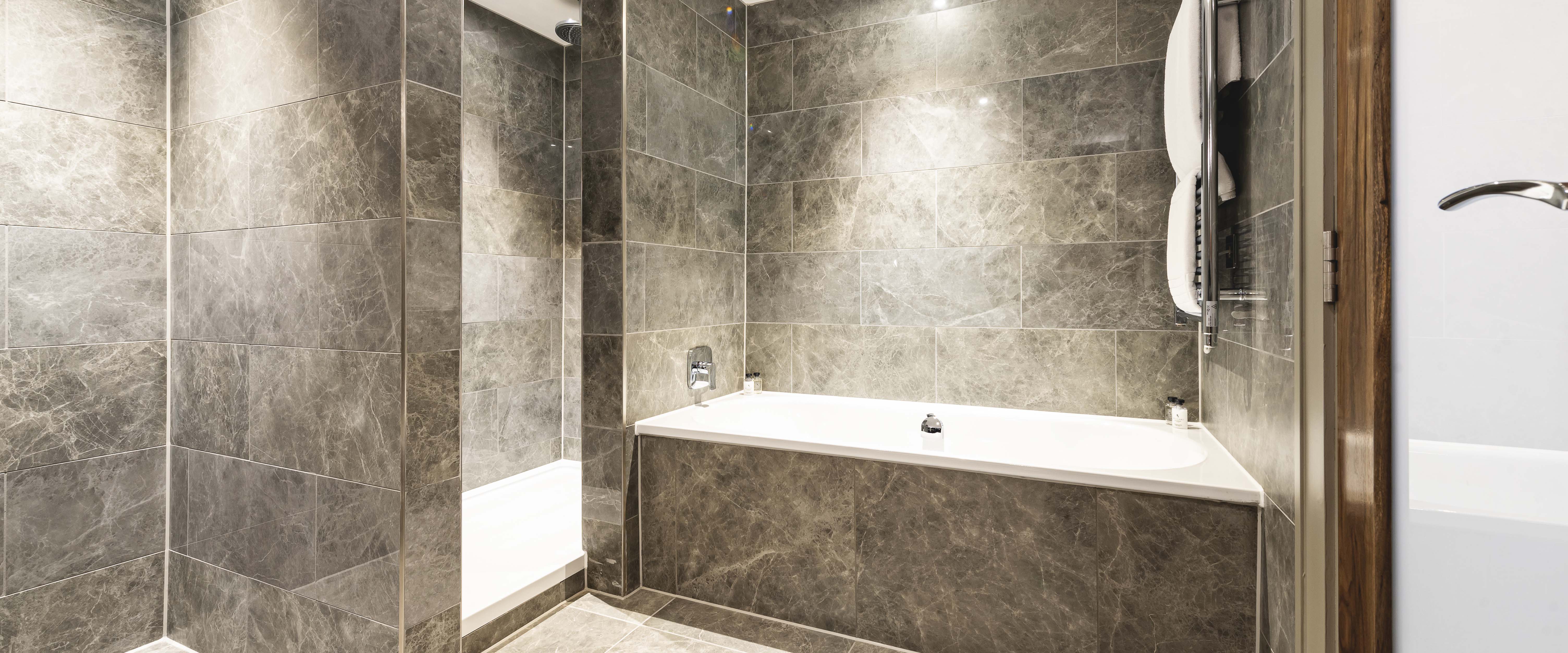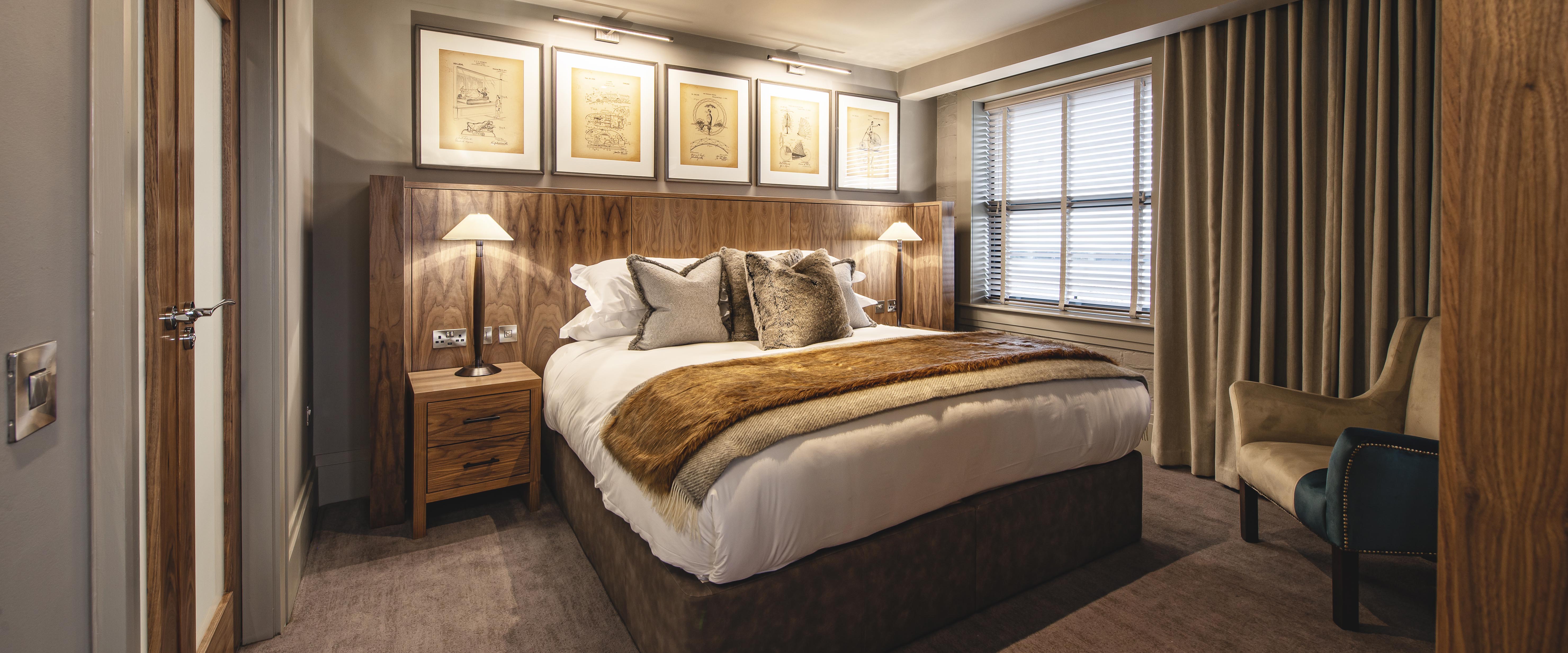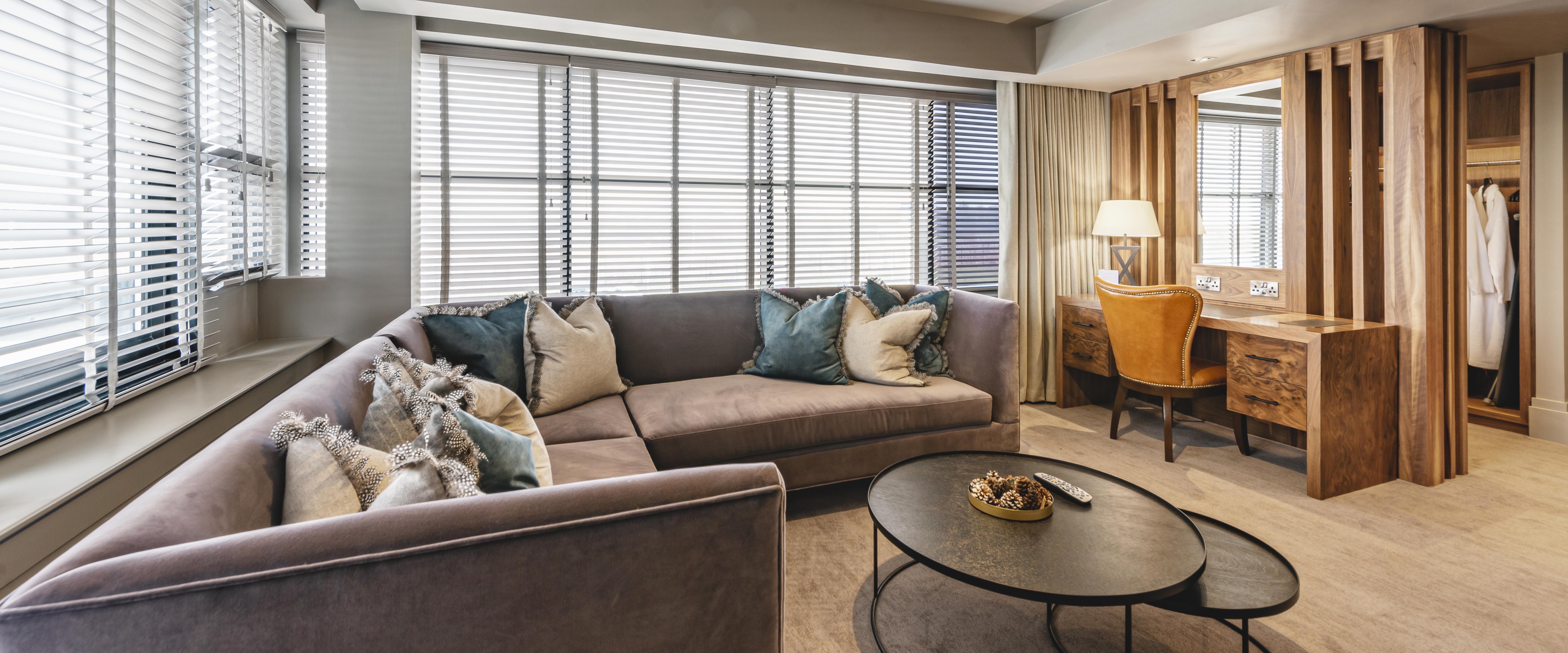 Your home away from home. Spacious open plan corner suite featuring a super-king-size bed, a powerful en-suite rainfall shower and luxurious bath.