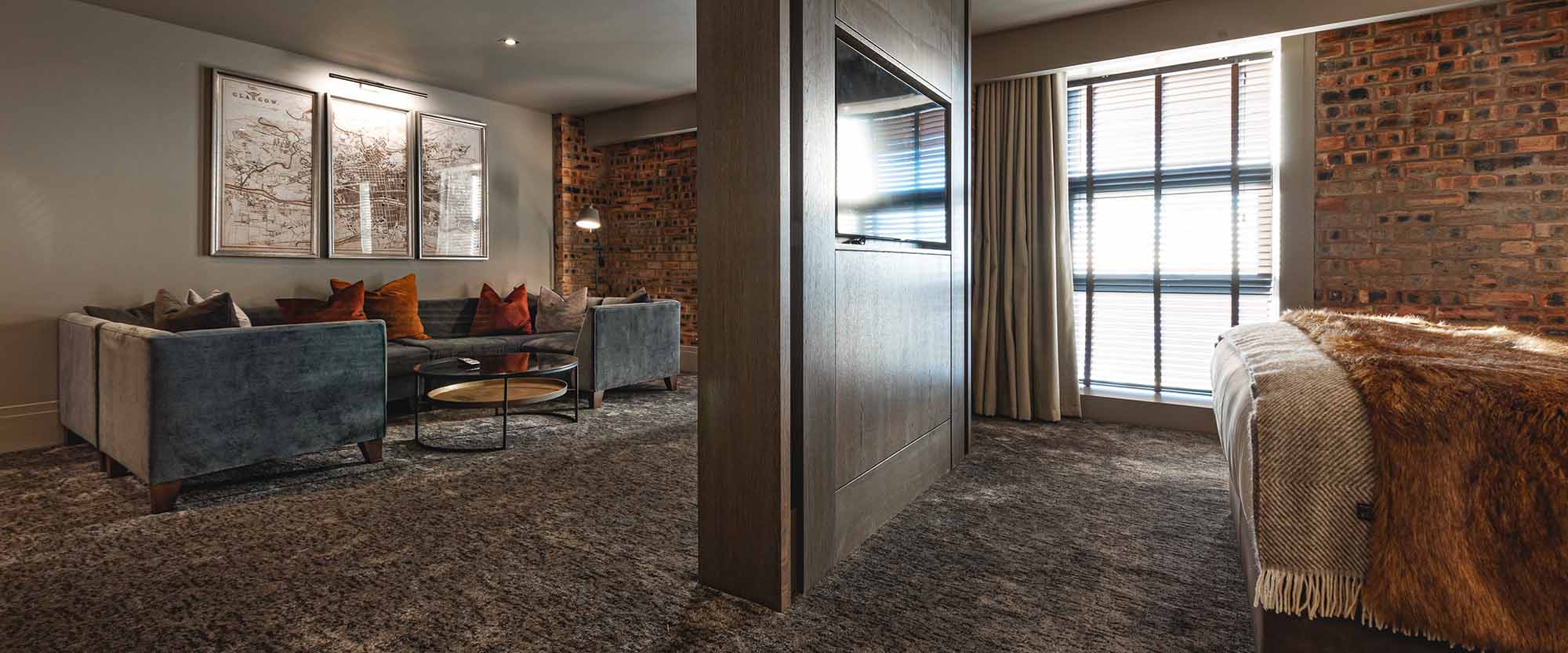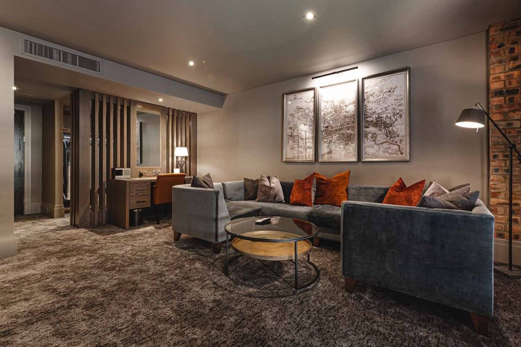 Extra everything. Large lounge and bedroom area featuring a super-king bed, en-suite bathroom complete with rainfall shower, and a separate bathtub, complemented by a walk-in wardrobe and Nespresso coffee machine.