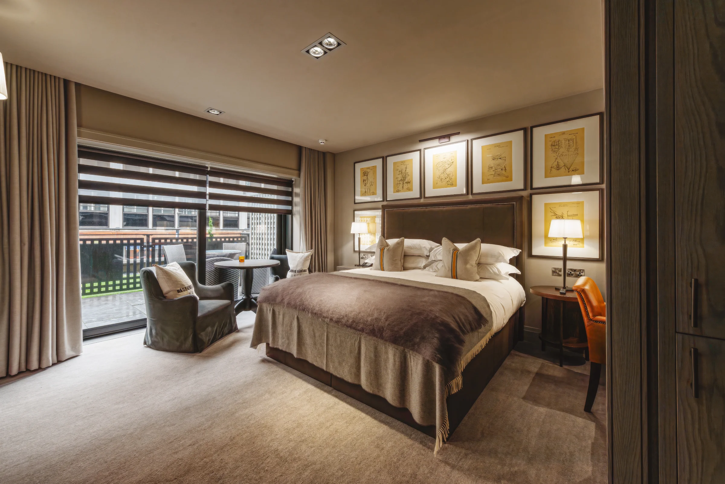 A beautifully designed contemporary room, with a large super-king size bed, plush furnishings and powerful ensuite shower.