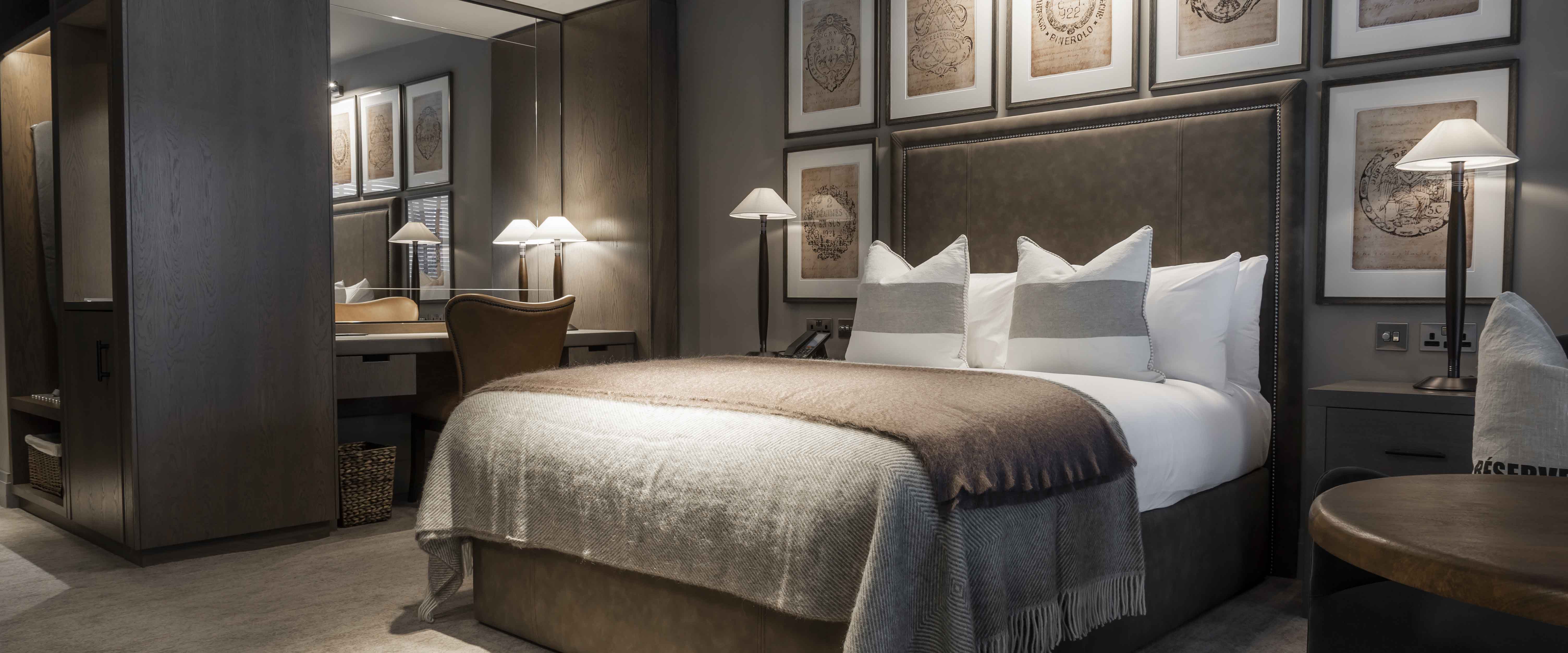 Smart HDTV with Sky Package Including Sports — Work desk — Crisp cotton linen and sumptuously soft bedding — Blackout curtains — Ensuite rainfall shower — Luxury toiletries — Slippers — Nespresso machine — Tea and coffee tray, bottled water — Iron & ironing board — Hairdryer — In-room safe — Complimentary high speed WiFi