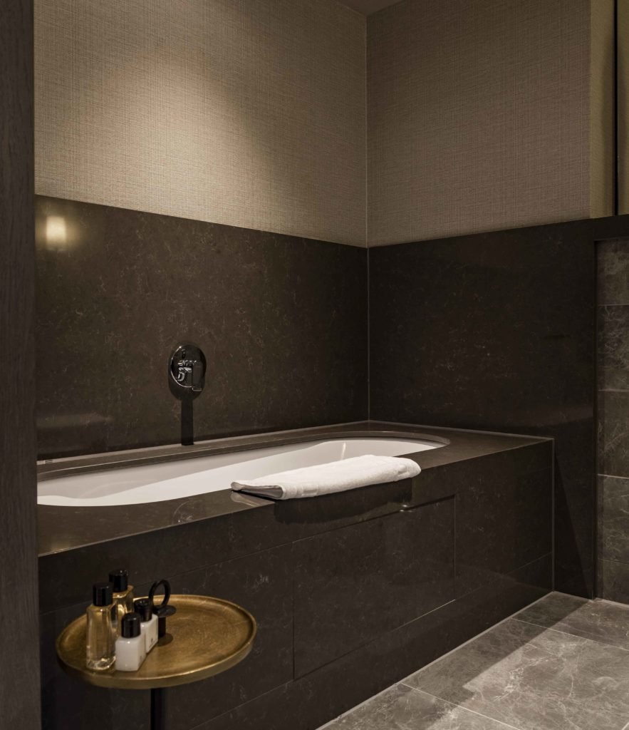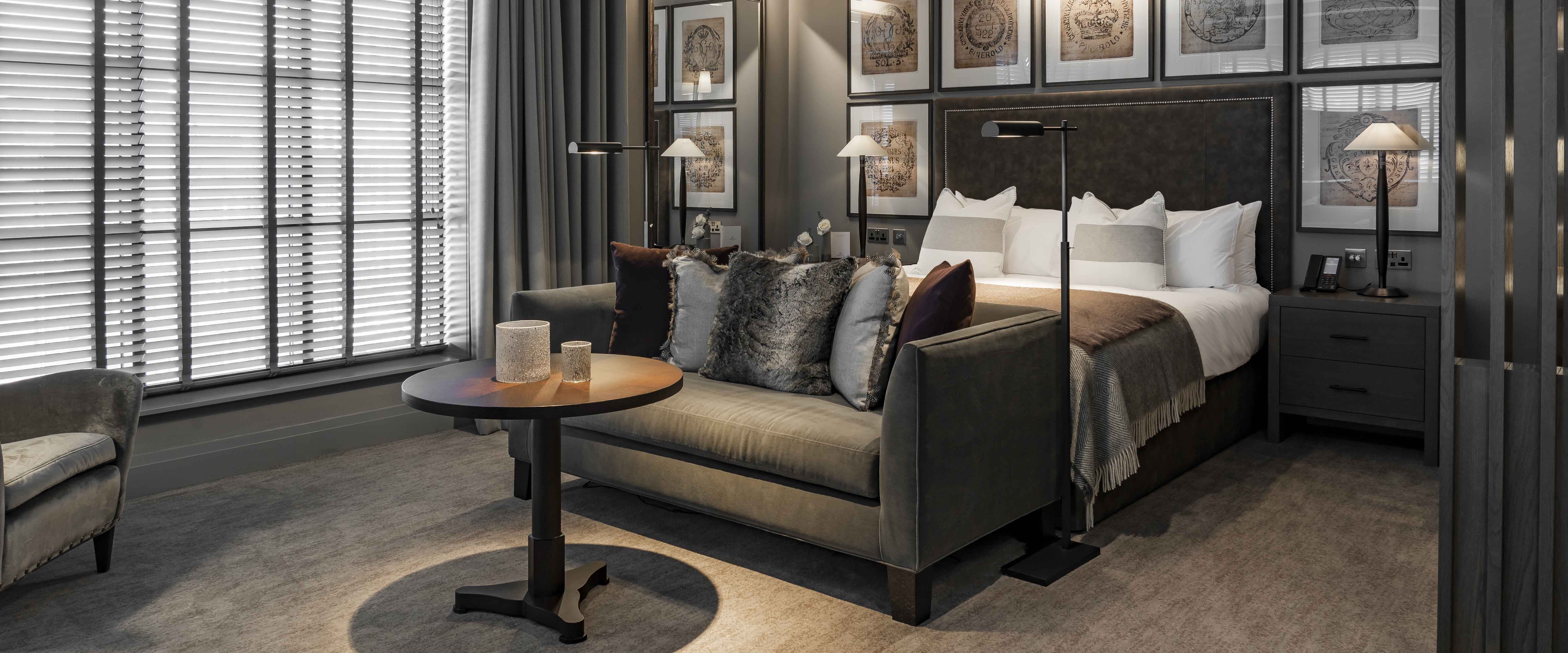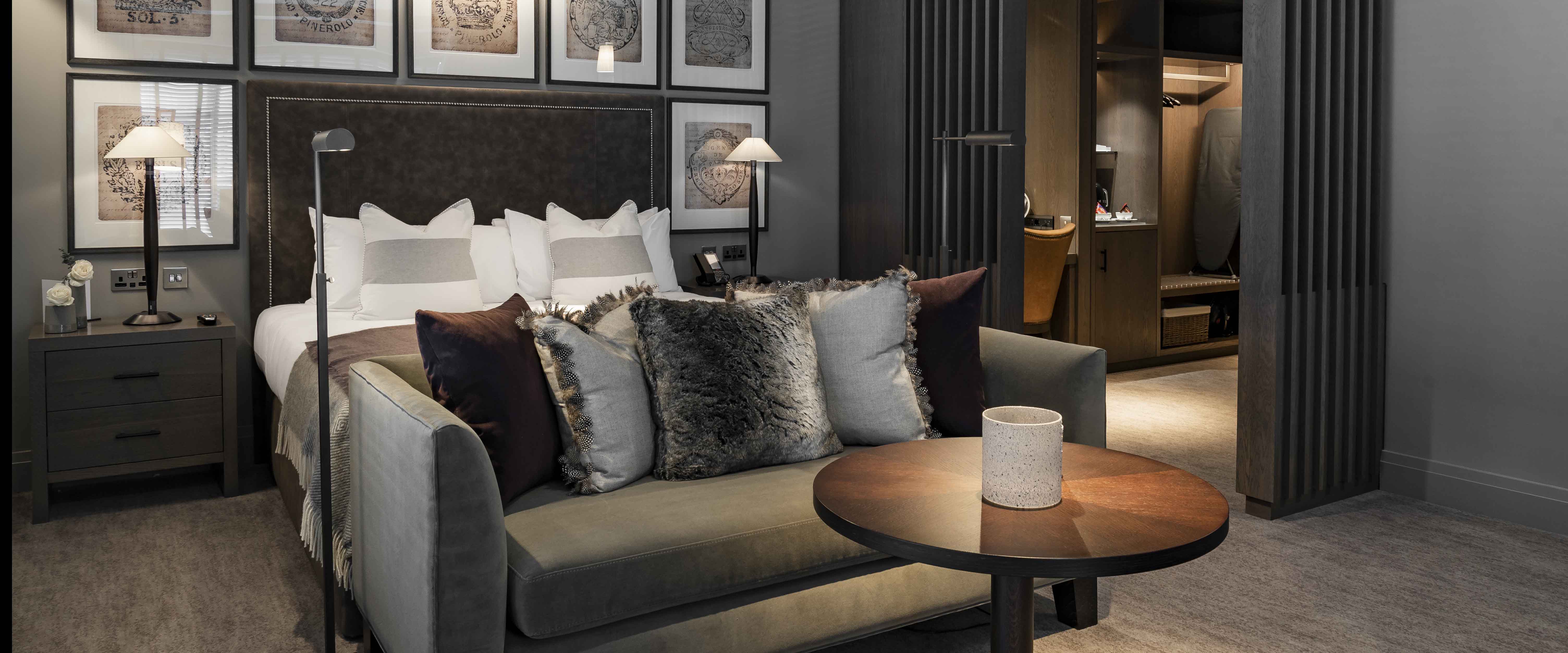 Luxurious super-king size bed — Large living space — Nespresso machine — Luxury marble-top bath — Separate rainfall shower — Luxury toiletries — Smart HDTV with Sky Package Including Sports — Work desk — Crisp cotton linen and sumptuously soft bedding — Blackout curtains — Complimentary mini fridge — Tea and coffee tray, bottled water — Bathrobes and slippers — Evening turndown service — Hairdryer — In-room safe — Complimentary high speed Wi-Fi