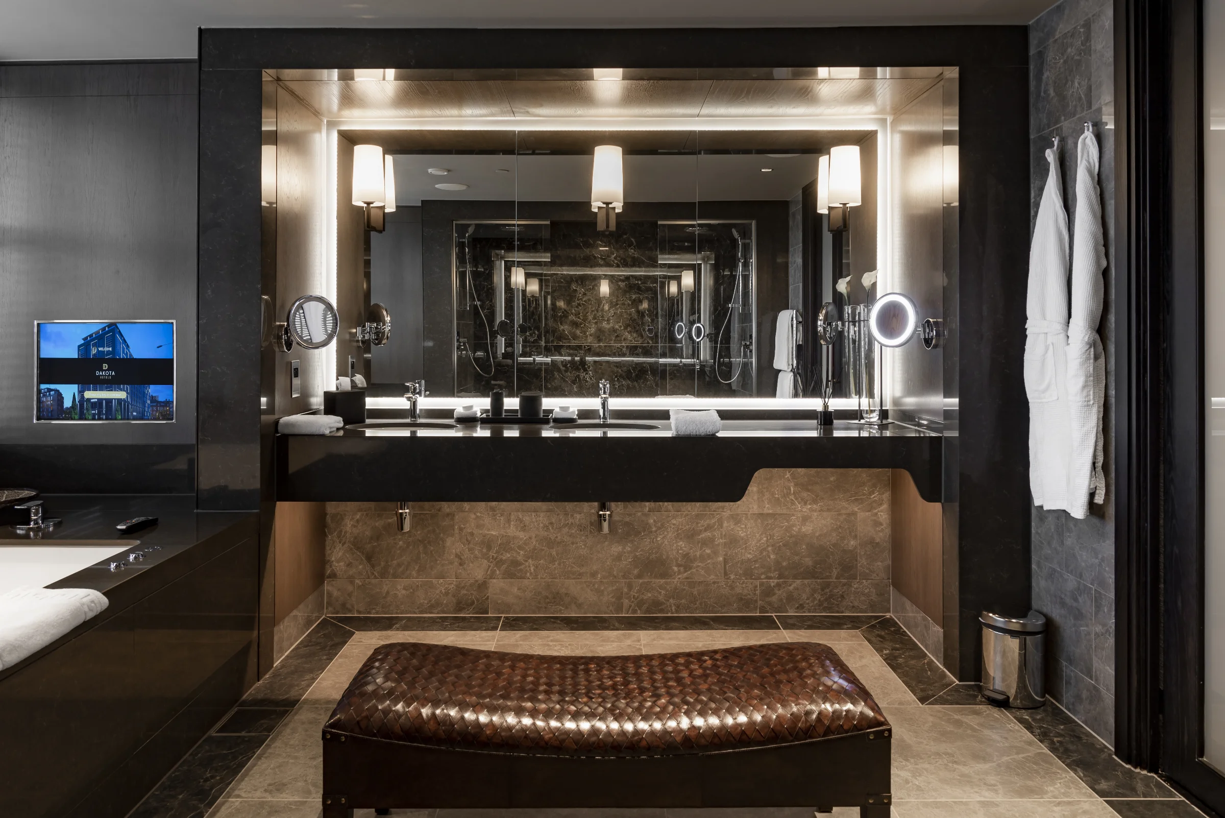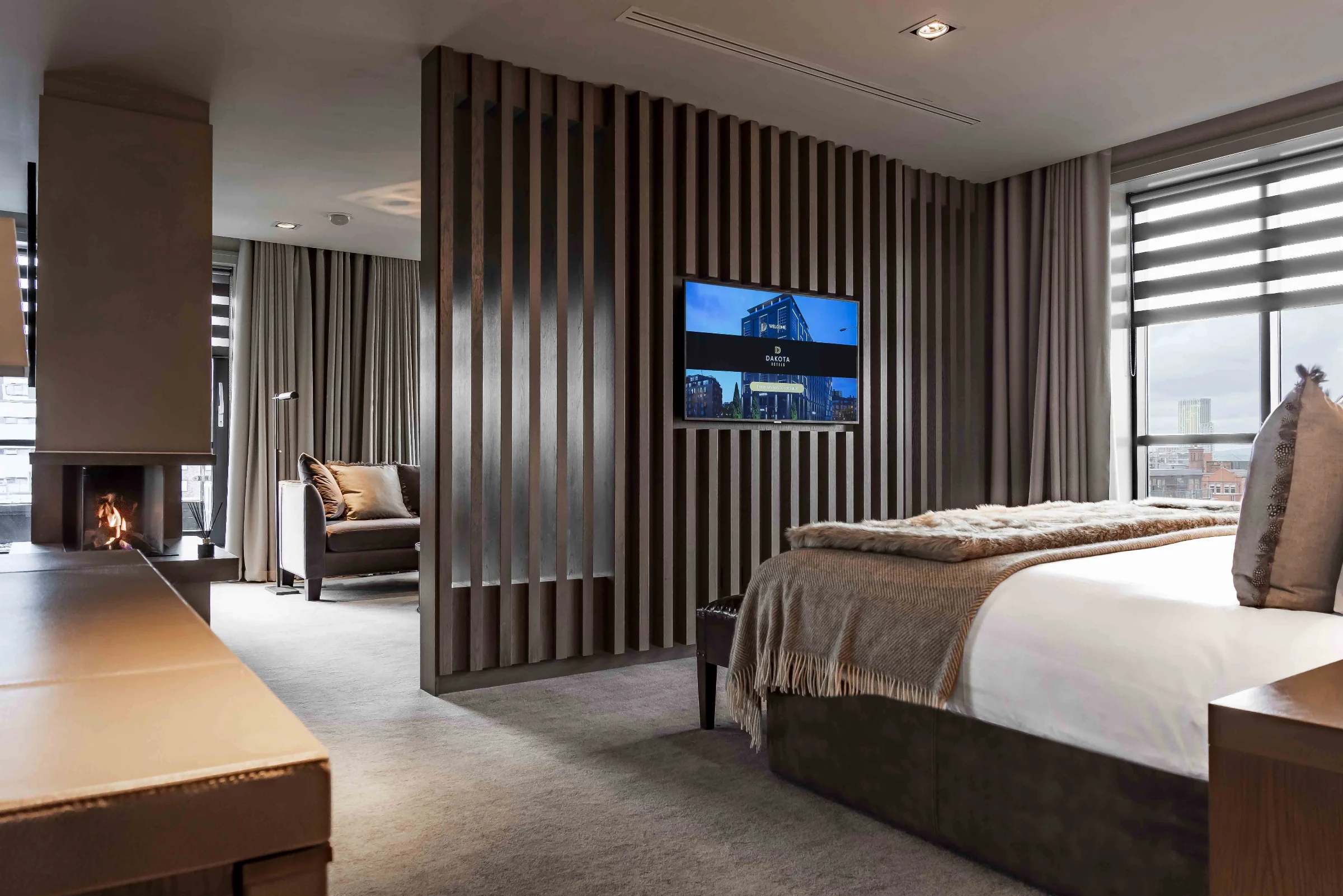 Choose our two bedroom Grand Deluxe Suite to take in the views over the city from your own private wraparound balcony. Relax in the separate bedrooms with dedicated lounge spaces, as well as luxurious en-suite bathrooms. Indulge in the largest suite in Manchester covering 175m², complete with your own personal Dakota Host throughout your stay.