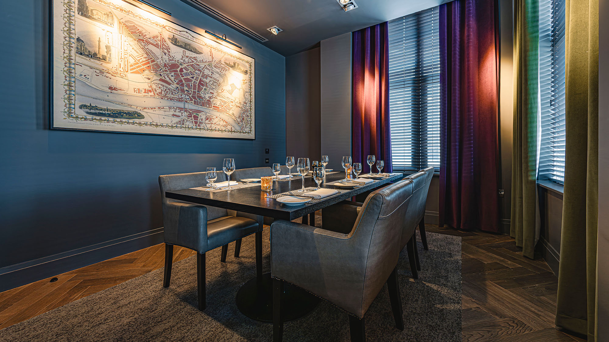 Start any private dining occasion in style; greet your guests in our exclusive Champagne Room, a semi-private room in Dakota Bar. With seductive decor, marble accents and a coveted collection of Champagne, this stylish nook is the ideal setting for cocktails and canapés before enjoying a private dining experience.
