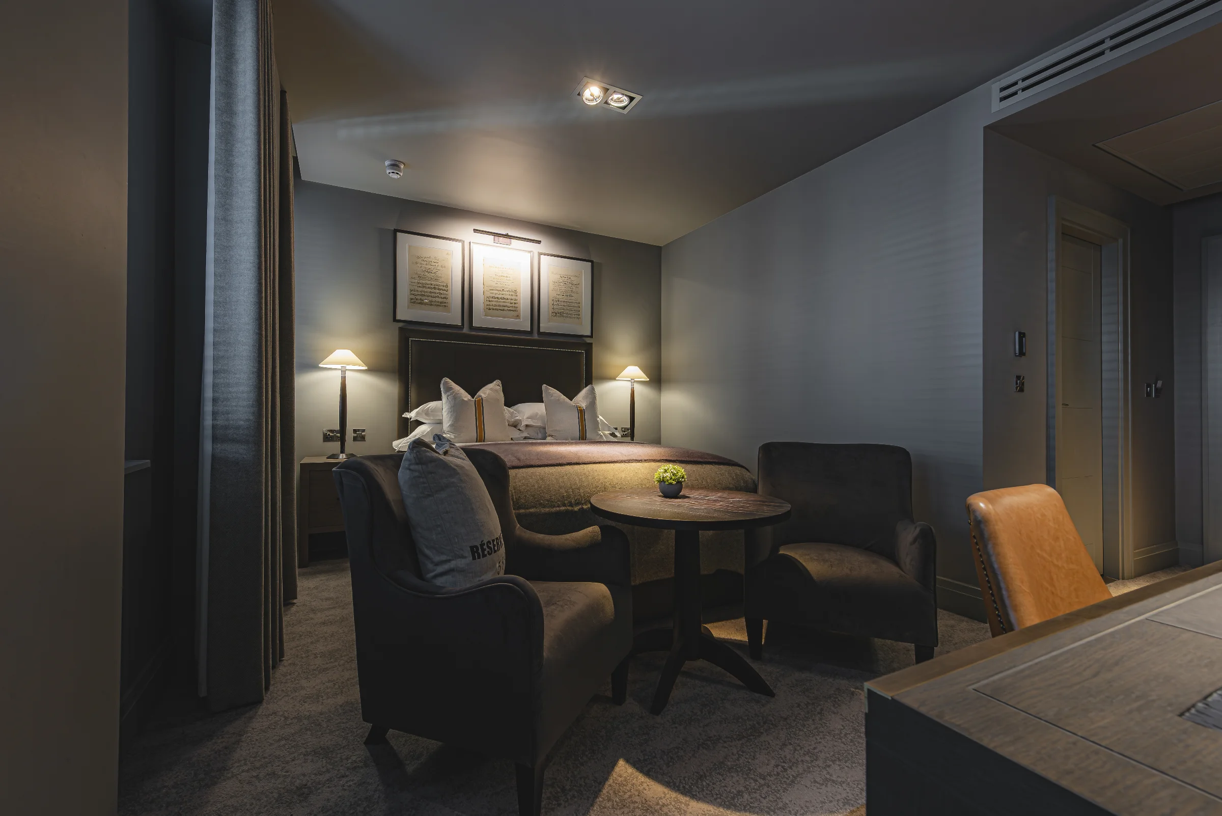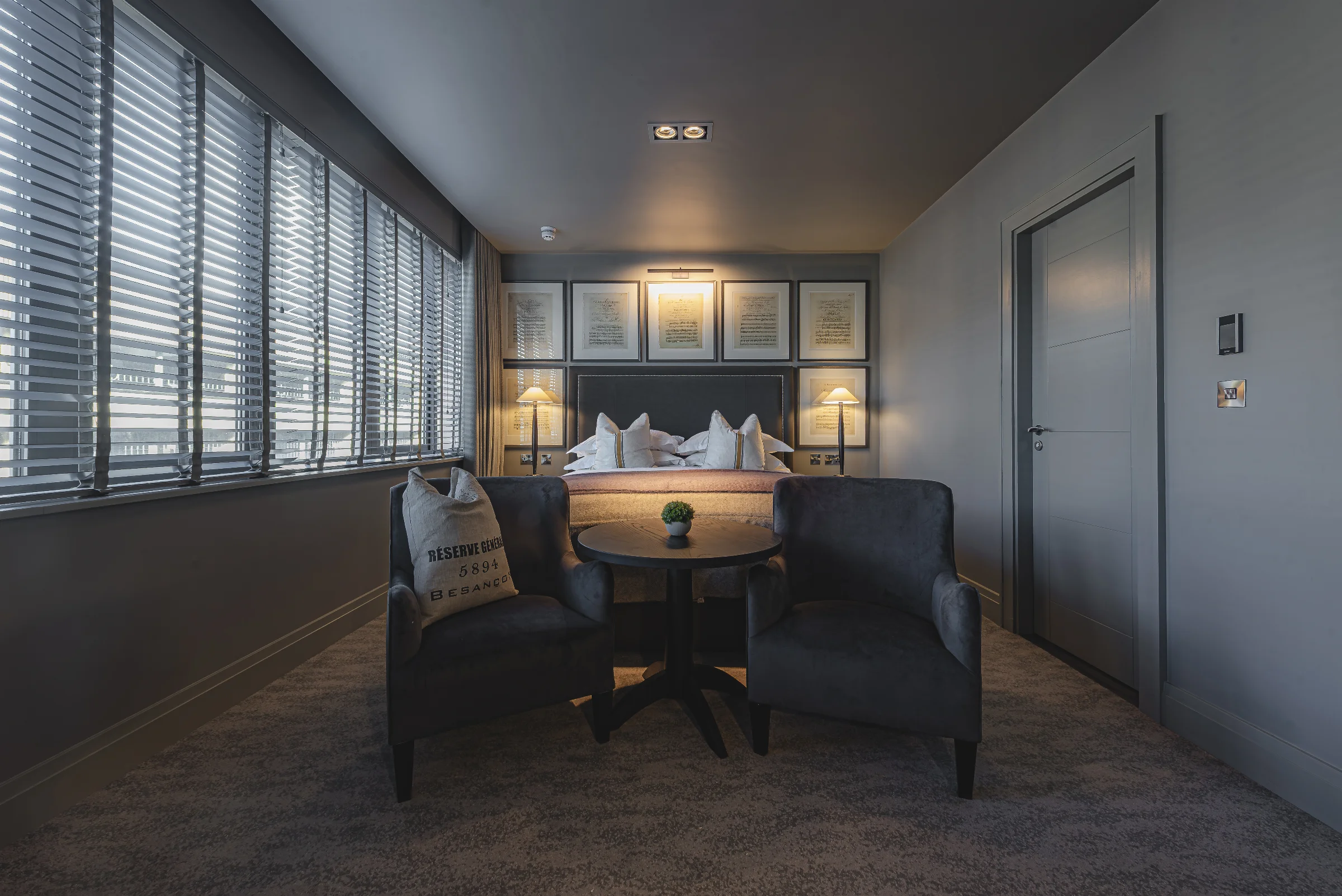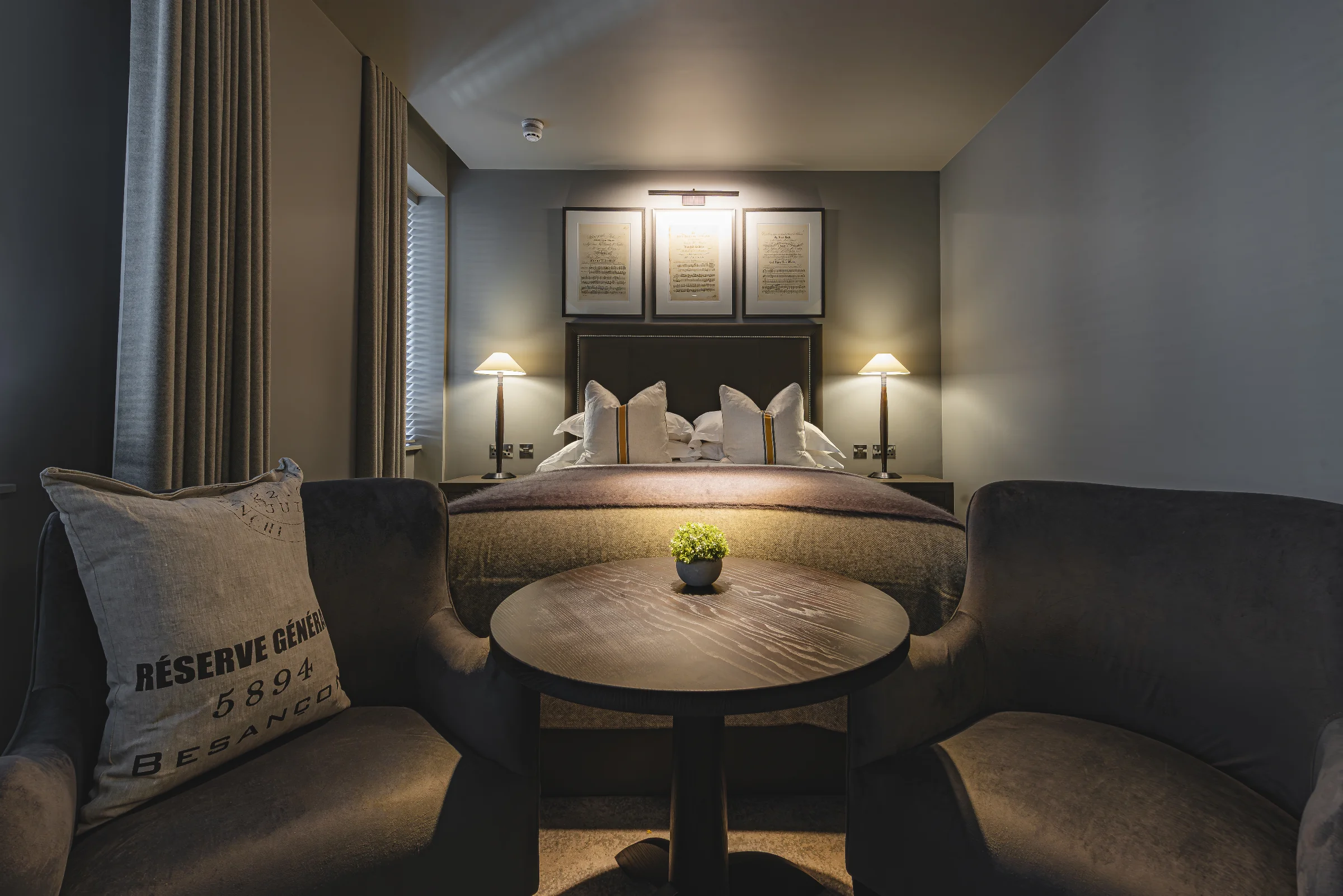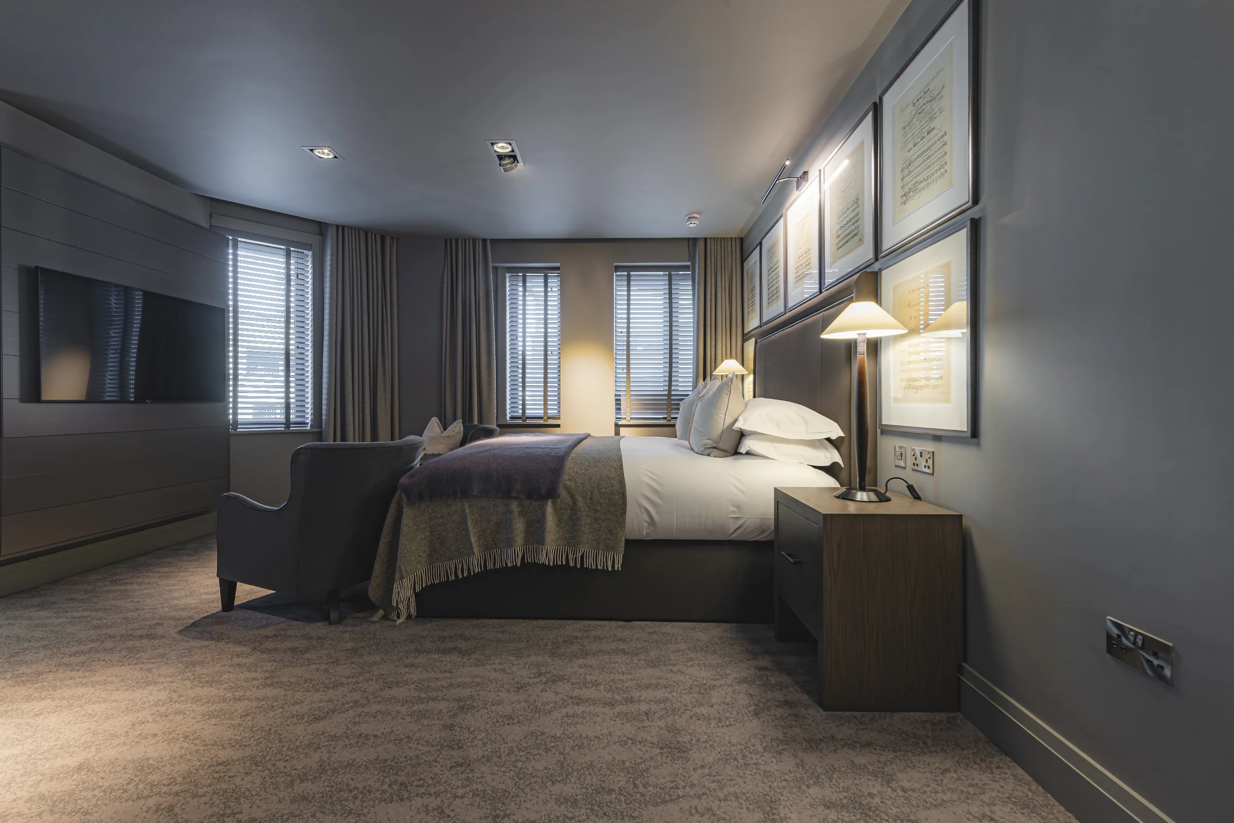 Our Classic Double Rooms offer comfort and style with crisp cotton linens, luxury toiletries, and a rainfall shower. Ideal for relaxation, these rooms include complimentary high-speed Wi-Fi and a Apple TV with Sky Sports.