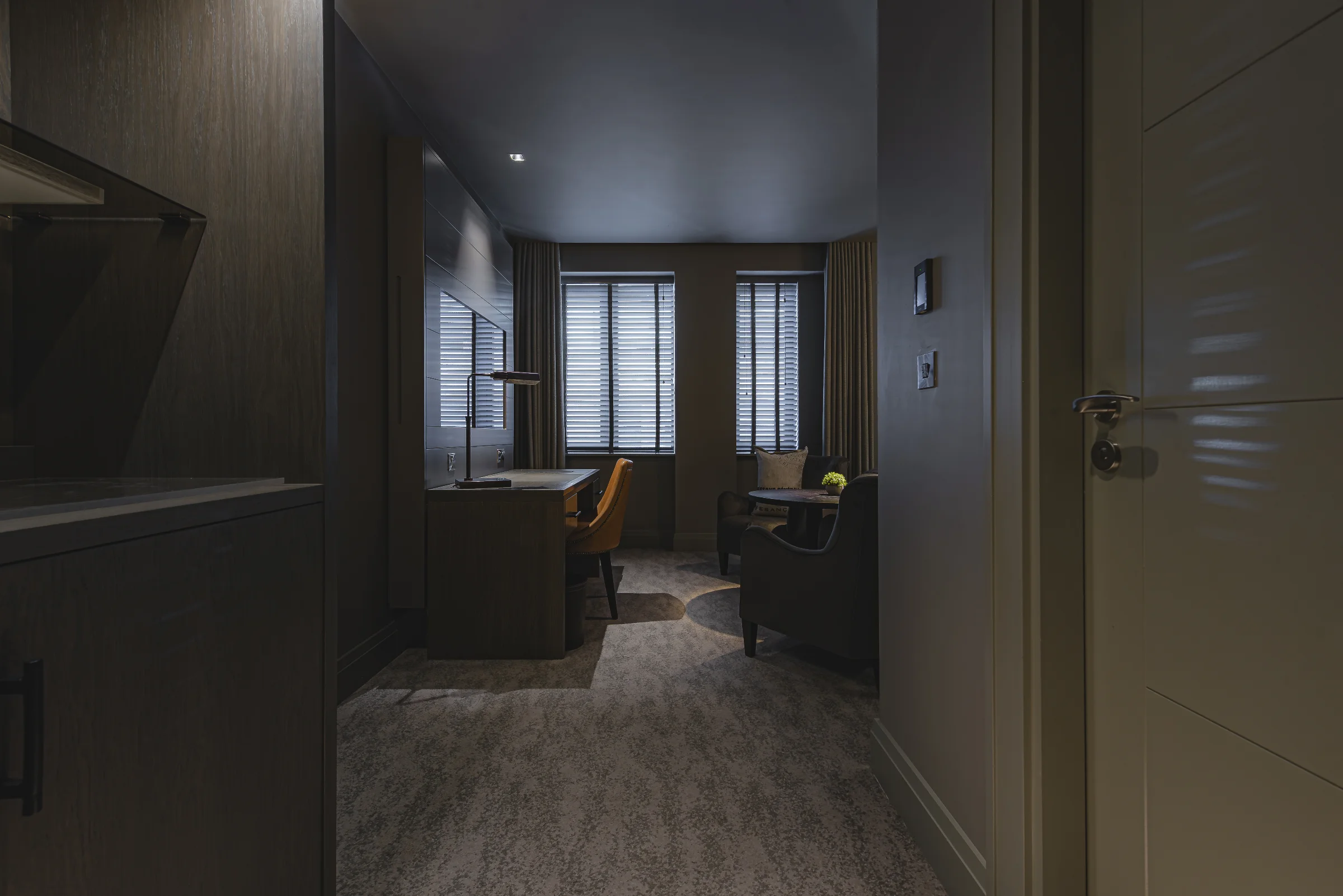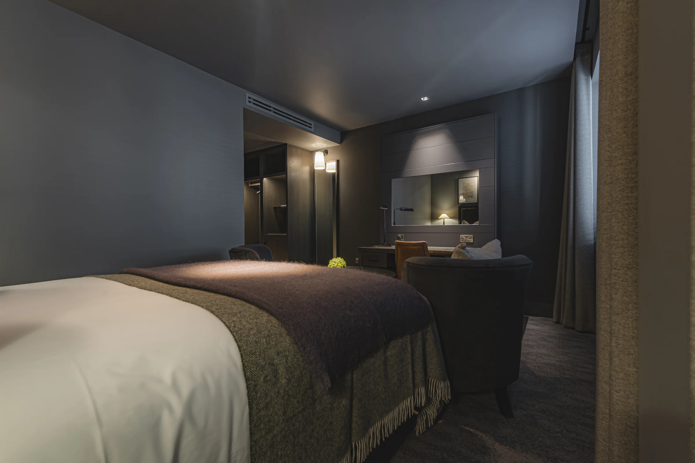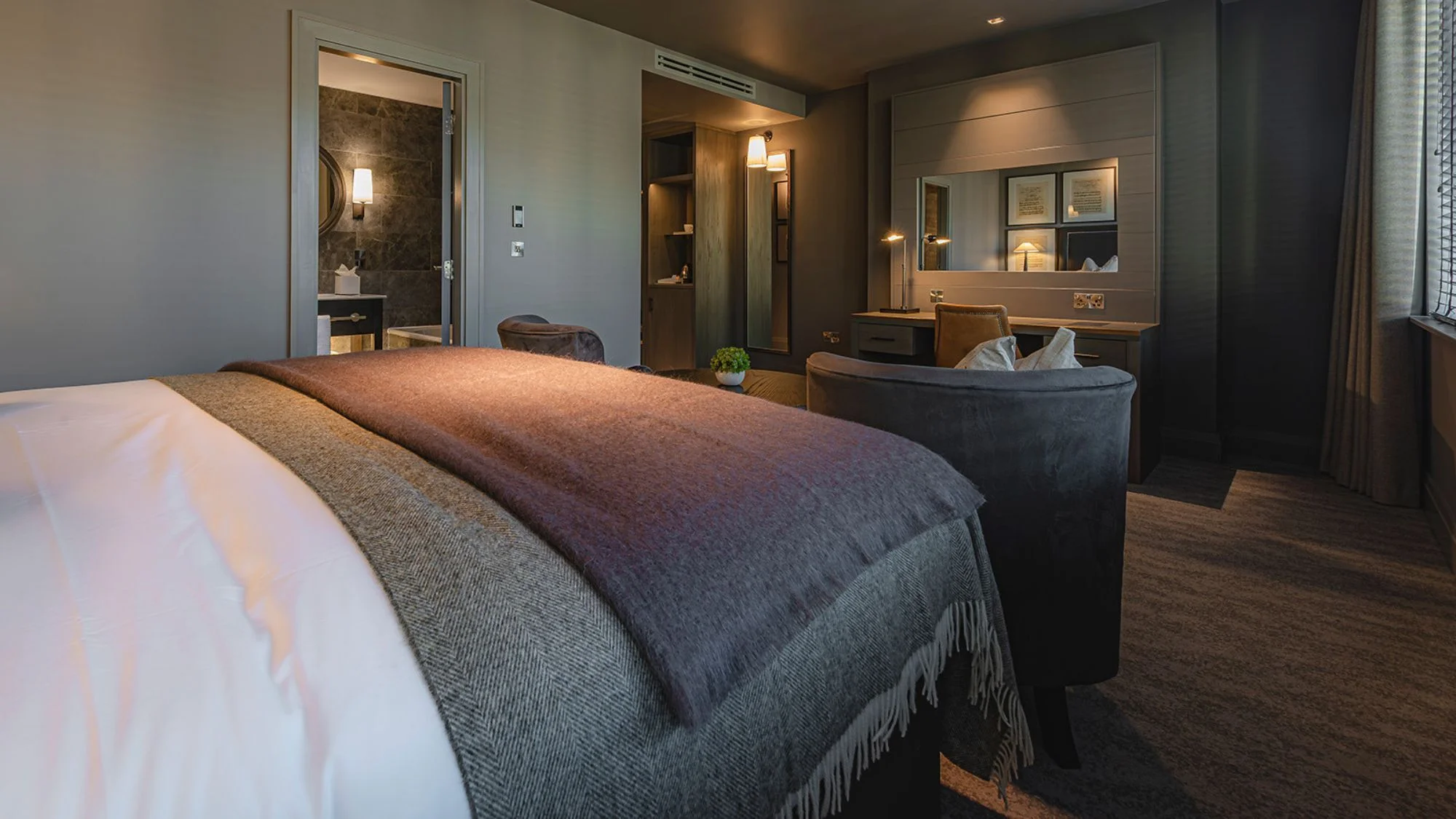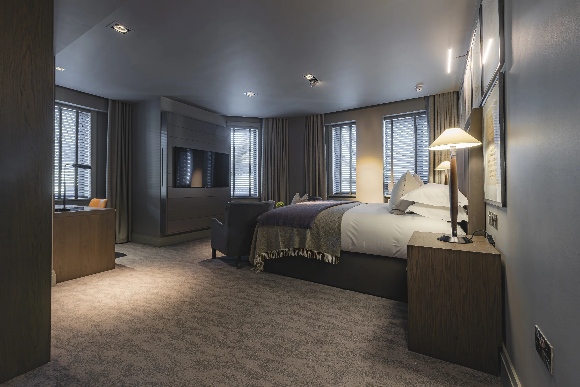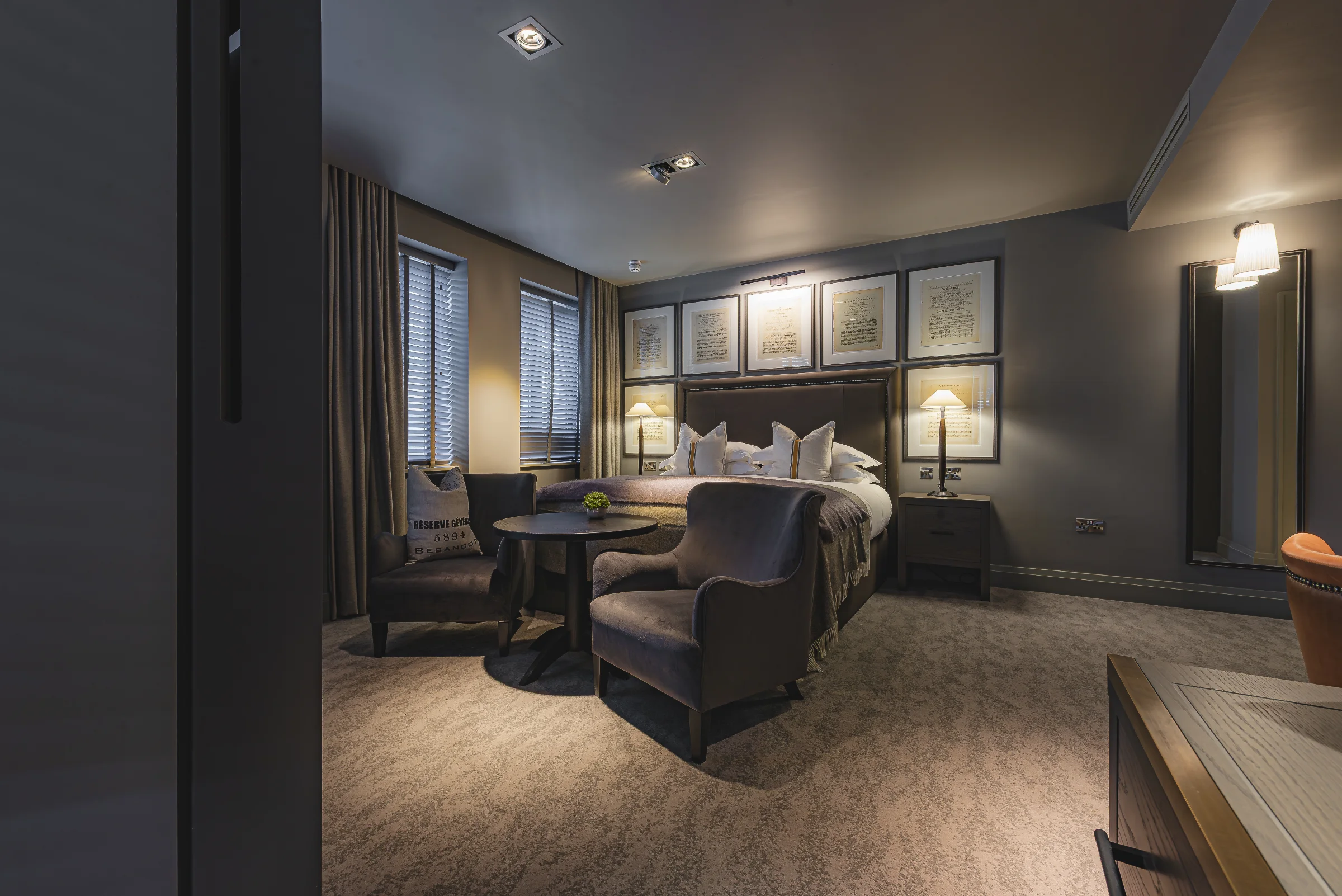 Our Classic Double Rooms offer comfort and style with crisp cotton linens, luxury toiletries, and a rainfall shower. Ideal for relaxation, these rooms include complimentary high-speed Wi-Fi and a Apple TV with Sky Sports.