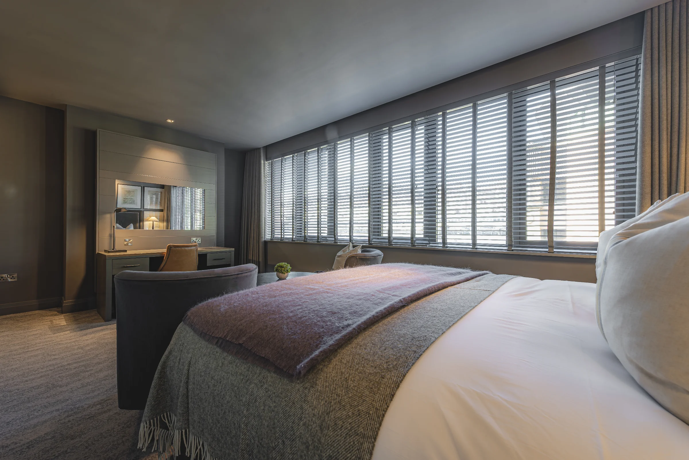 Our King Rooms feature a sumptuous king-size bed, perfect for a restful retreat. Enjoy premium amenities including a rainfall shower, luxury toiletries, and a HDTV.