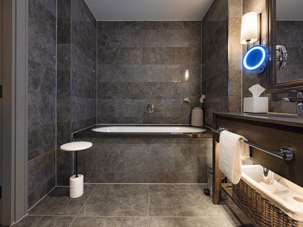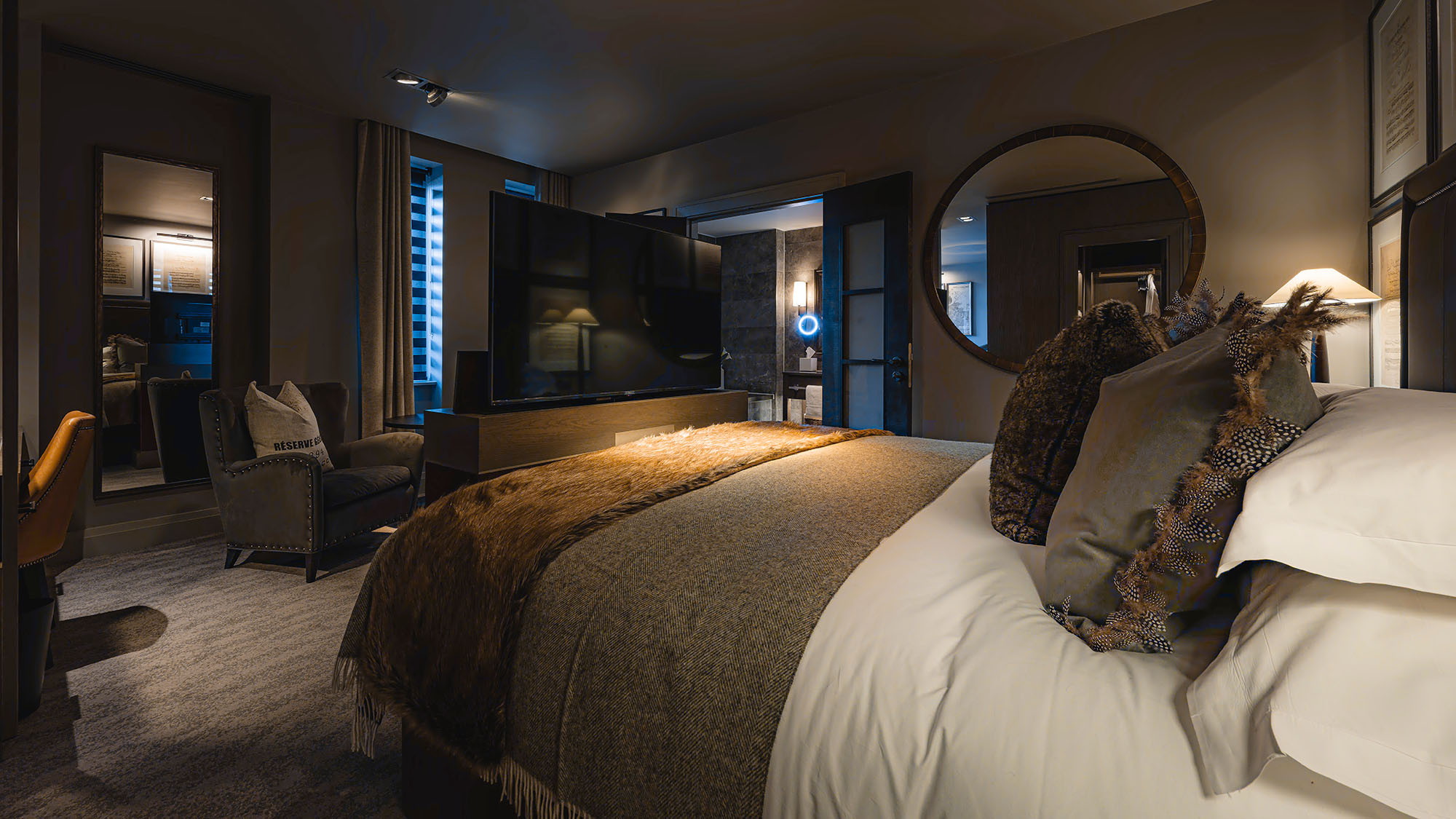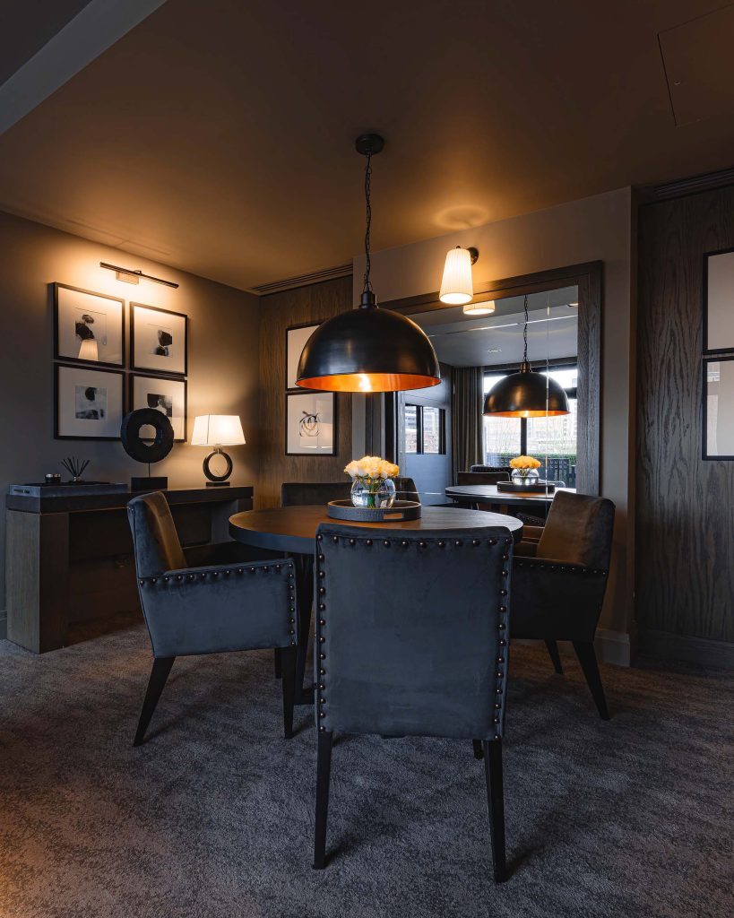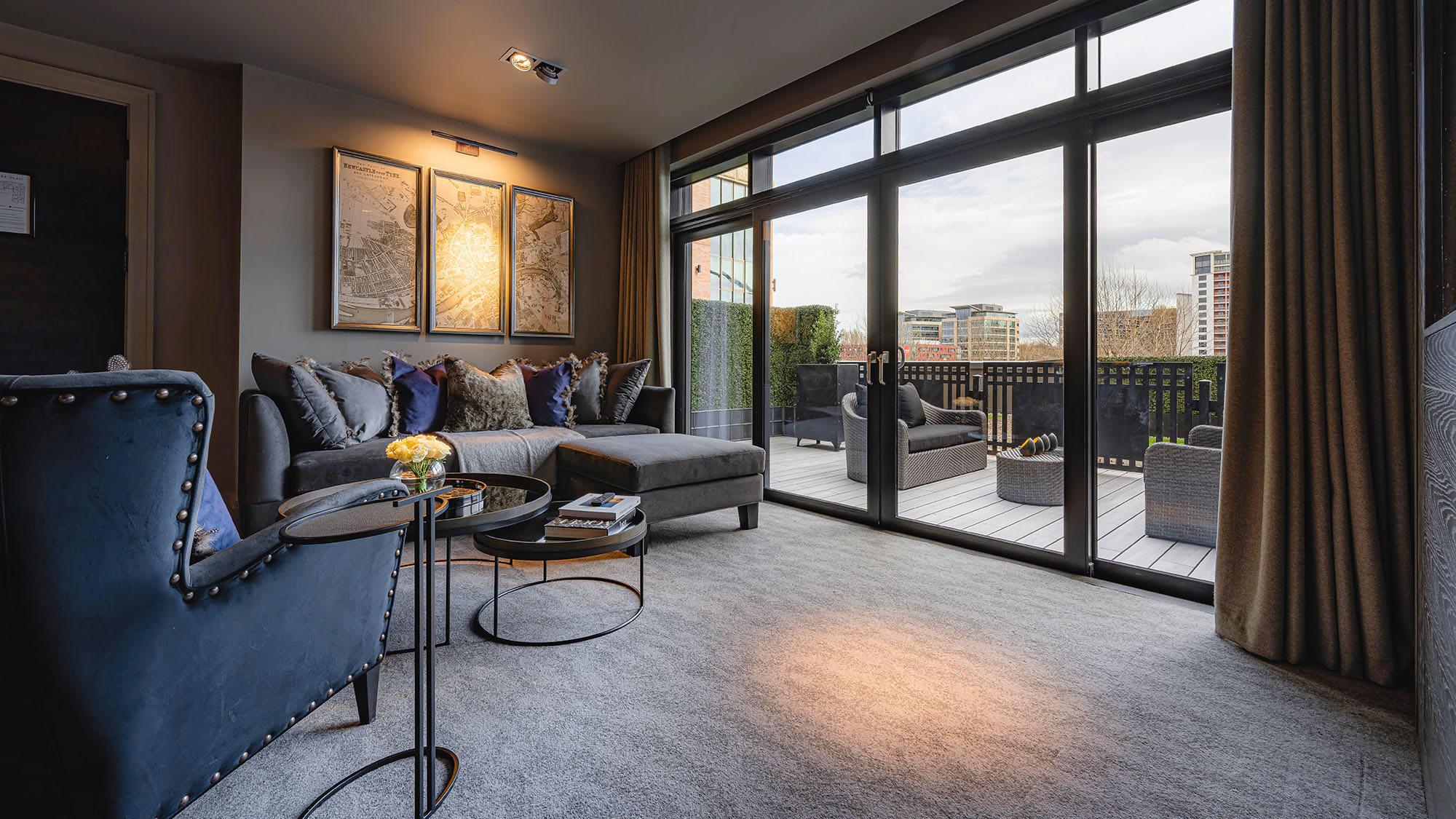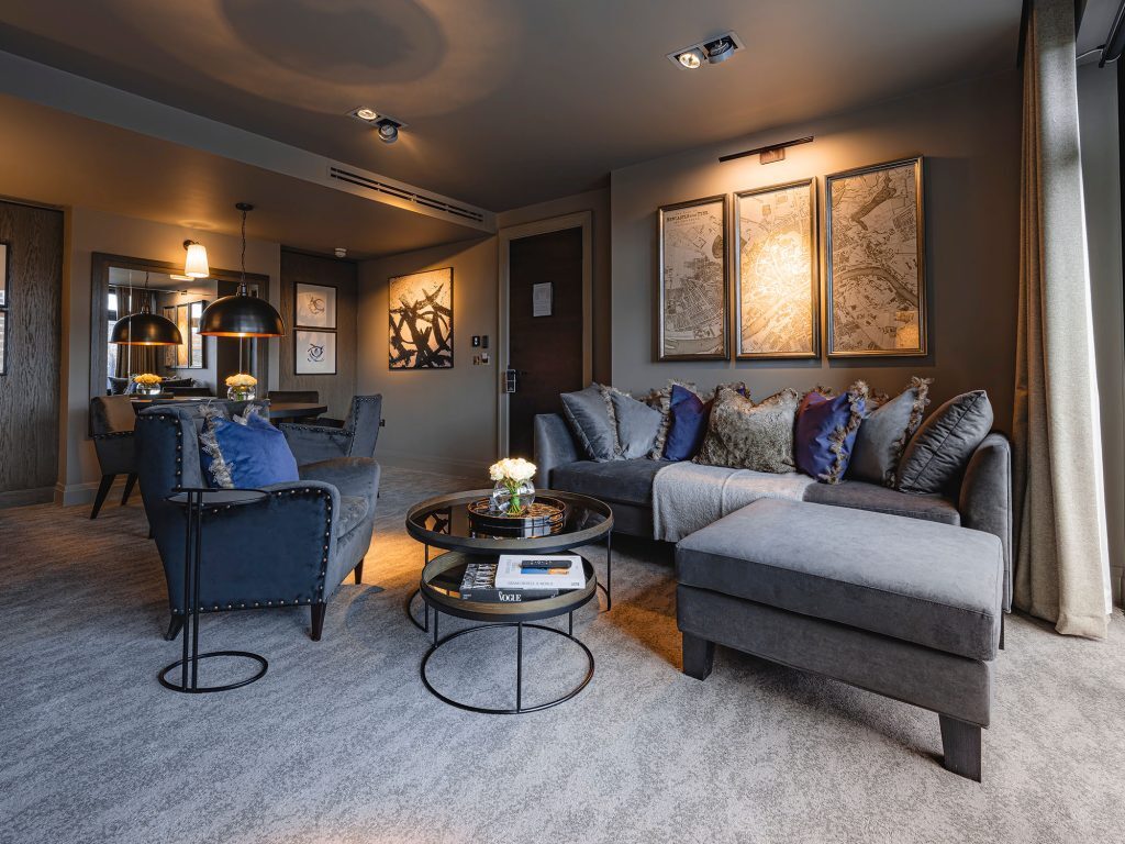 Super king-size bed with crisp cotton linens — Large living space — Dining table for four — Balcony with outdoor seating — Walk-in wardrobe — Ensuite bathroom with rainfall shower — Separate bath — Nespresso machine — Complimentary mini fridge — Luxury toiletries — Apple TV with streaming apps and Sky Sports package — Work desk — Crisp cotton linen and sumptuously soft bedding — Blackout curtains — Tea and coffee tray, bottled water — Slippers and bathrobe — Evening turndown service — Hairdryer — In-room safe — Complimentary high speed Wi-Fi
