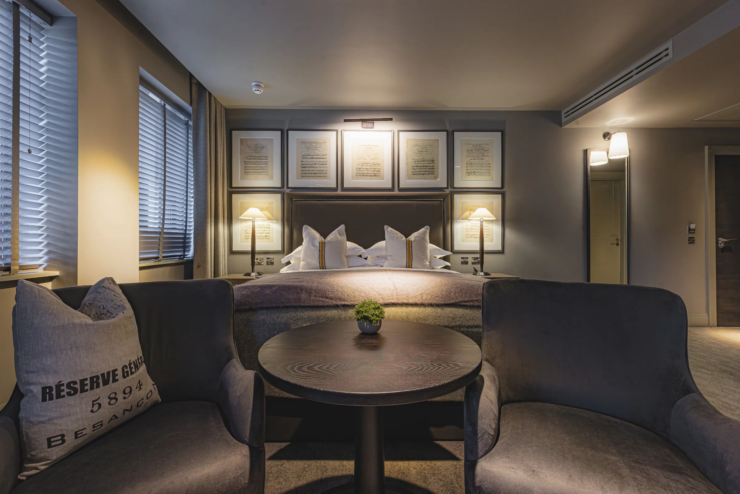 Elevate your stay in our Junior Suites, complete with a spacious living area, Nespresso machine, and a super king-size bed. Unwind in the separate bath and indulge in evening turndown service.